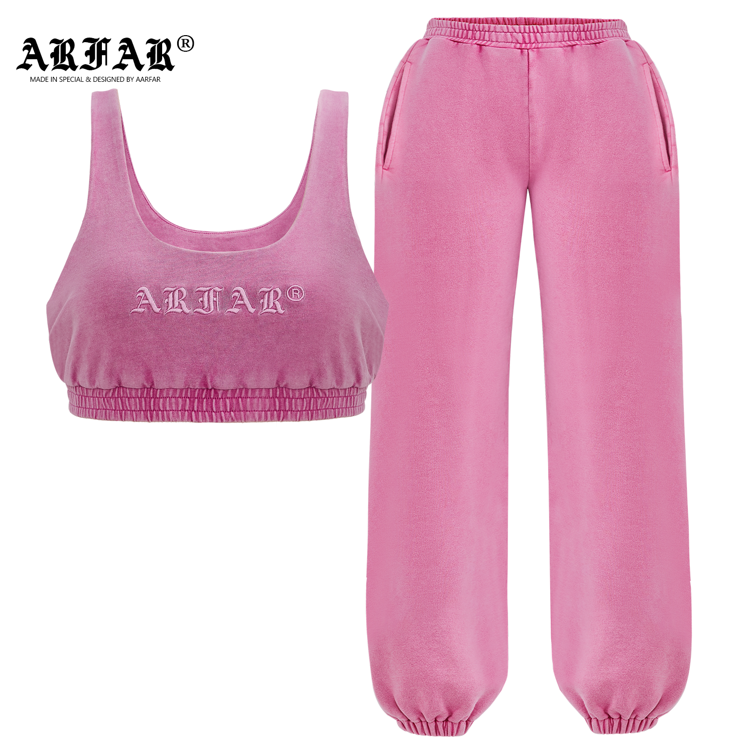 100% Cotton Acid Washed Crop Tops And Jogger Pants Set For Women