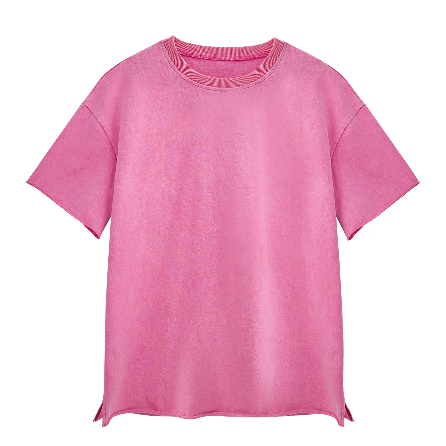 100% Cotton Acid Washed Pink Side Slit T-shirt