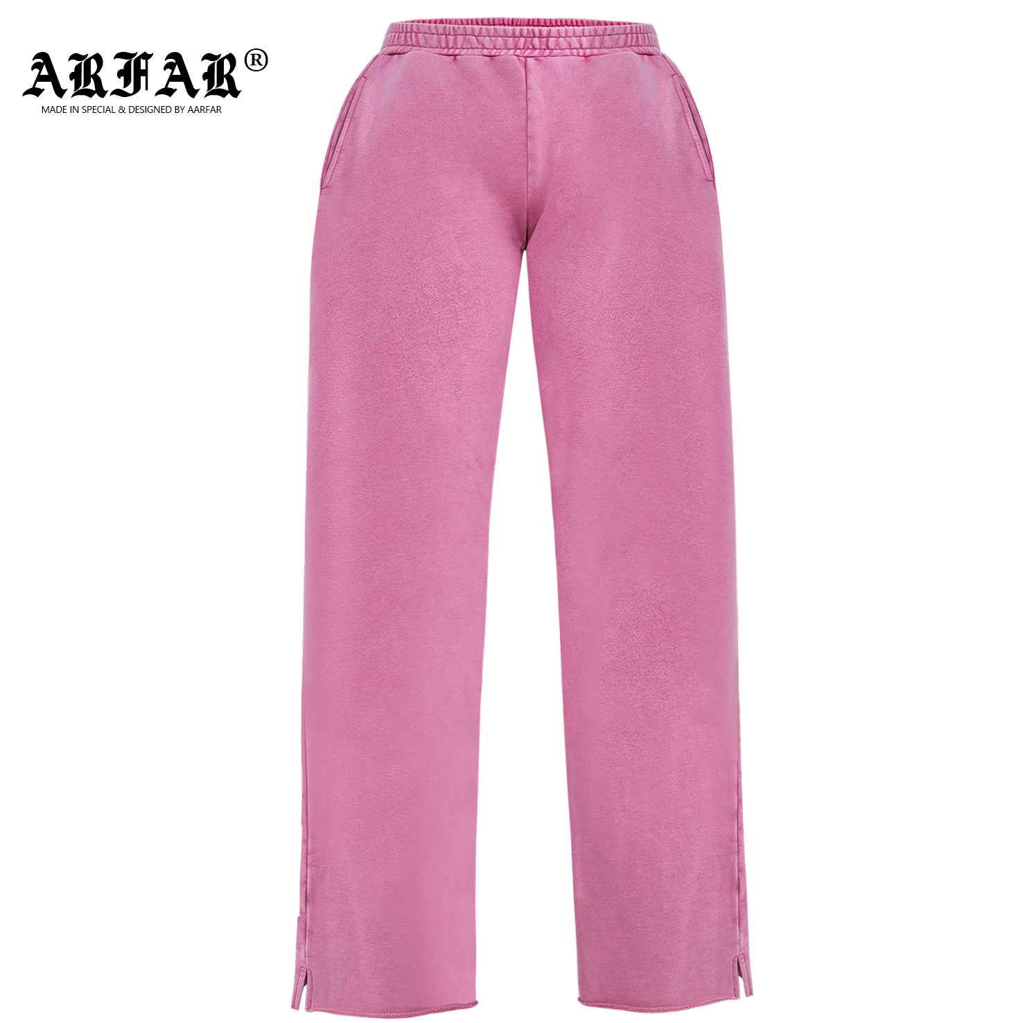 100% Cotton Split Hem Women Acid Washed Pink Pants